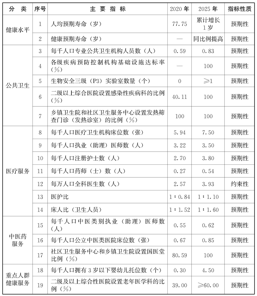 “十四五”時期全省醫療衛生資源要素配置主要指標