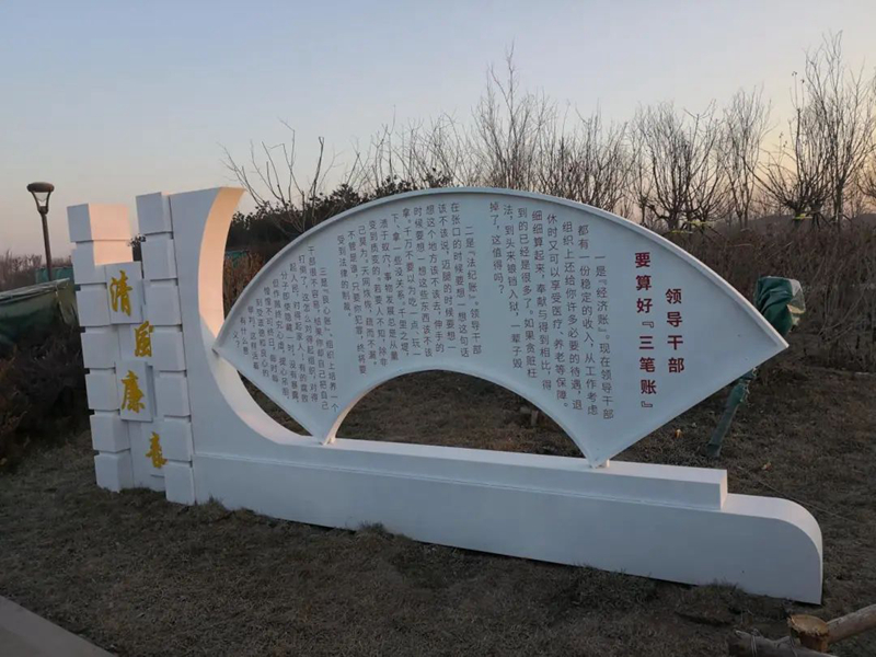 主題公園設置景觀造型14個,共分四個版塊:廉政故事區,主要展示習近平總書記對雄安新區規劃建設的指示批示、對領導干部廉潔從政的要求等內容;廉政宣傳區,主要宣傳習近平“國之大者”的論述;廉政標語區,主要引導黨員干部堅持習近平新時代中國特色社會主義思想,在新區發展建設中樹立大視野、展現大擔當、大作為;廉政名人區,主要介紹“容城三賢”楊繼盛、孫奇逢的廉政事跡,用本地名人事跡深化廉政教育。公園景觀造型設計美觀、制作精良、布局合理,為周邊環境增添亮點,使黨員干部群眾于潤物無聲處受到廉潔文化的熏陶。