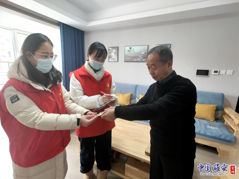 容東社區工作者為王所印送去免費公交卡。中國雄安官網黃海 攝