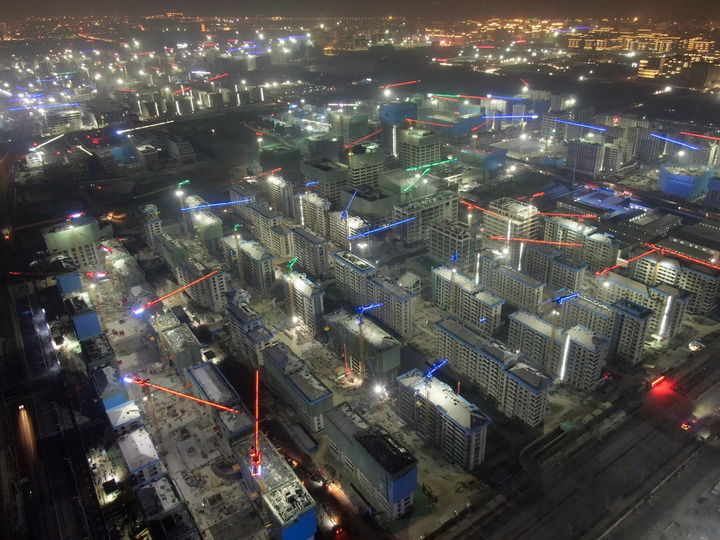這是2022年1月4日拍攝的雄安新區容東片區華望城項目夜景(無人機照片)。新華社記者駱學峰 攝