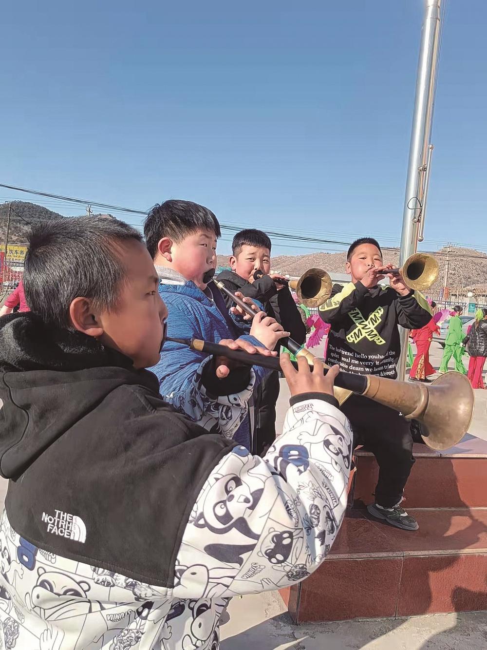 孩子們吹起嗩吶來格外賣力。張莉 攝