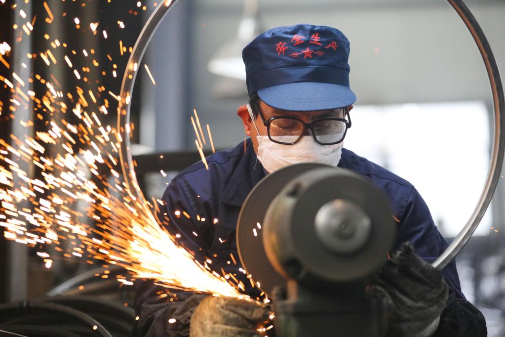 2月7日,在浙江省杭州市臨安區天目山鎮一家外貿企業,工人在拋光自行車鋼圈。新華社發胡劍歡 攝