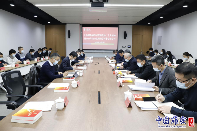 中國雄安官網11月10日電 11月7日,雄安新區公共服務局召開理論學習中心組學習會議,深入學習貫徹黨的二十大精神,引導班子成員和黨員干部在全面學習、全面把握、全面落實上下功夫,把思想和行動統一到黨的二十大精神上來,把力量凝聚到黨的二十大確定的目標任務上來。雄安新區公共服務局黨支部書記、局長高立春主持會議并講話。