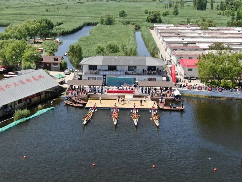 河北省雄安新區安新縣新時代文明實踐中心與端村鎮新時代文明實踐所組織開展“龍舟競渡 喜迎端午”水上運動嘉年華活動,4支代表隊在大淀頭村游客中心碼頭劈波斬浪,傳承龍舟文化,歡度端午佳節。