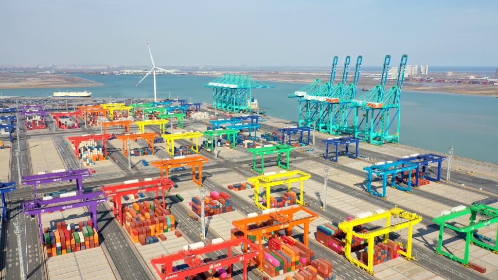 圖為天津港全物聯網集裝箱碼頭(2023年2月21日攝,無人機照片)。新華社記者趙子碩 攝