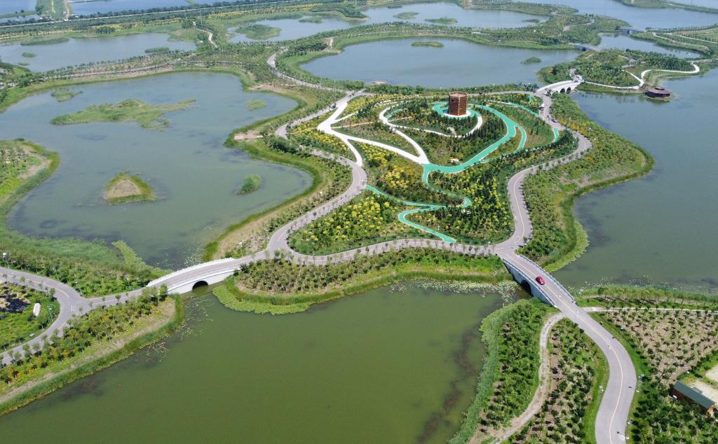 圖為天津市西青區王穩莊鎮生態廊道(2022年7月7日攝,無人機照片)。新華社記者趙子碩 攝