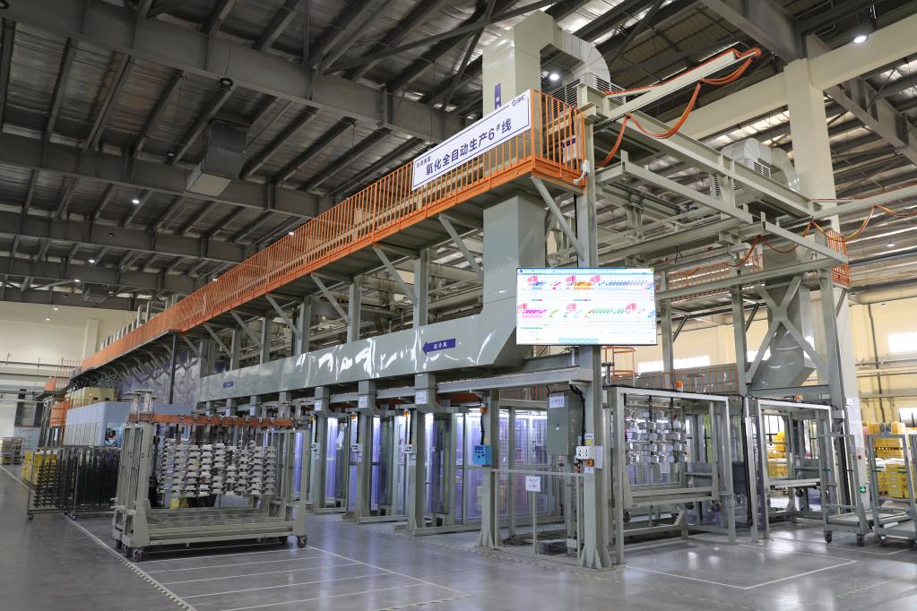 圖為2023年3月1日拍攝的SMC(天津)制造有限公司的表面氧化自動化生產線。新華社發