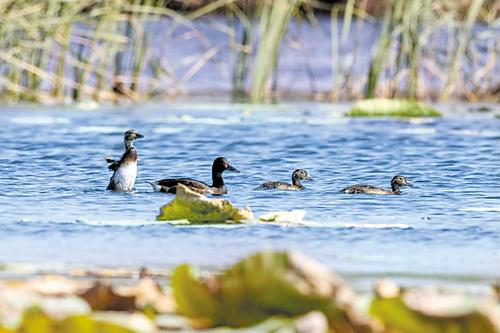 6月27日,省林草局組織雄安新區林草部門,會同有關專家、志愿者對白洋淀青頭潛鴨進行監測時,再次發現3至4處疑似青頭潛鴨雌鳥與雛鳥活動情況并拍攝影像。