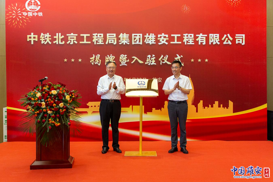 活動(dòng)上,雄安集團(tuán)黨委副書記、董事、總經(jīng)理路立營和中鐵北京局集團(tuán)黨委副書記、董事(主持黨委和董事會(huì)工作)張衛(wèi)紅為中鐵北京工程局集團(tuán)雄安工程有限公司揭牌。