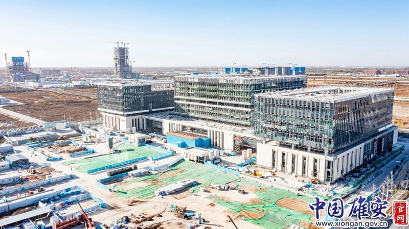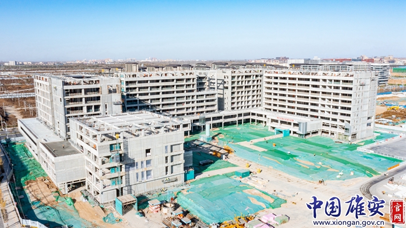 雄安宣武醫院(一期)工程已移交雄安新區開診試運行。二期工程(新區投資部分)目前3#醫技樓、4#醫技樓、3#住院樓、4#住院樓、門診樓均已封頂;西區科研樓、實驗樓、教學宿舍均已封頂,東區正在進行二次結構施工。中國雄安官網牛思佳 攝