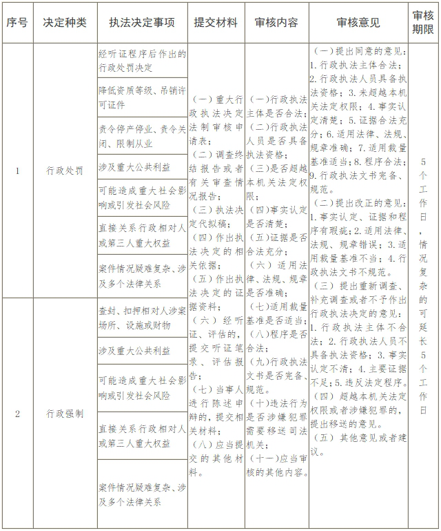 雄安新區(qū)綜合執(zhí)法局重大行政執(zhí)法決定法制審核事項(xiàng)清單