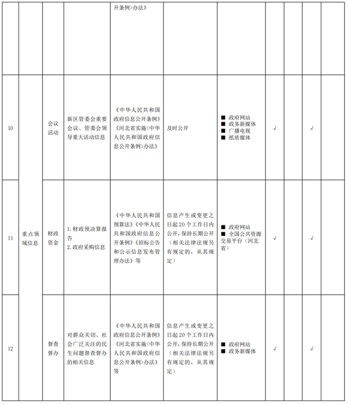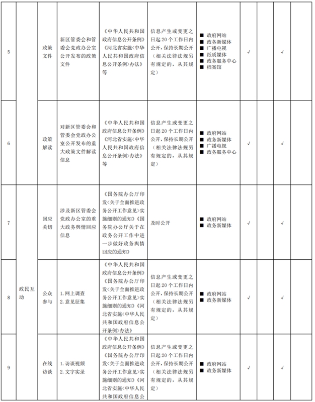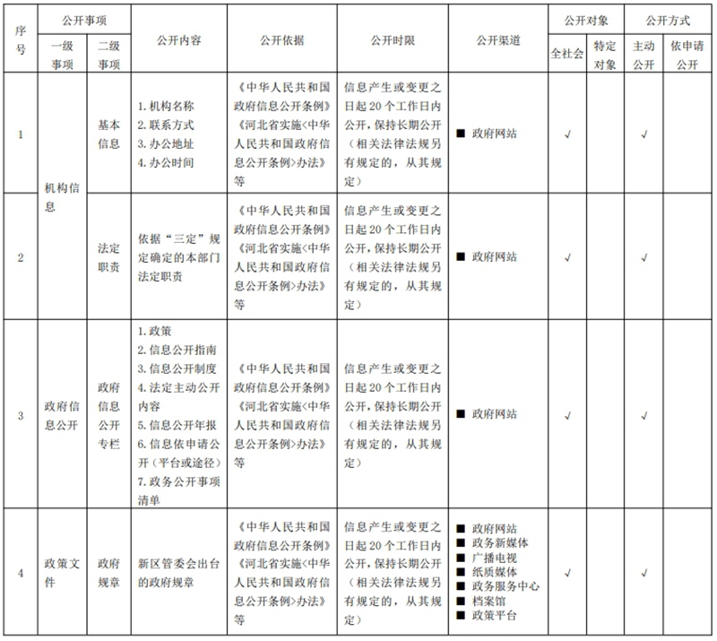 河北雄安新區黨工委管委會黨政辦公室政務公開事項目錄
