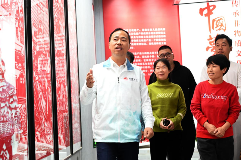 “剪紙最早出現于黃河流域,2009年被列入聯合國教科文組織人類非物質文化遺產代表作名錄……”12月1日上午,一個渾厚的男中音回蕩在雄安郊野公園古韻非遺展館里,幾位游客邊聽邊看,對滿墻的剪紙作品贊嘆不已。