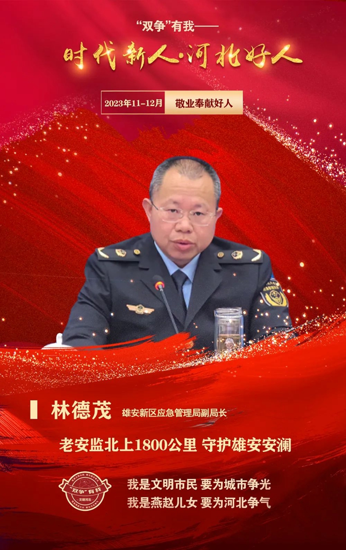 林德茂,男,1973年4月出生,中共黨員,雄安新區應急管理局副局長。2019年3月,受組織委派到雄安掛職。2021年3月,掛職期滿后主動選擇留任。他推動健全安全生產機制、轉變服務理念、創新監管方式,為雄安新區建設發展保駕護航。榮獲“河北省應急管理十大年度人物”等榮譽稱號。