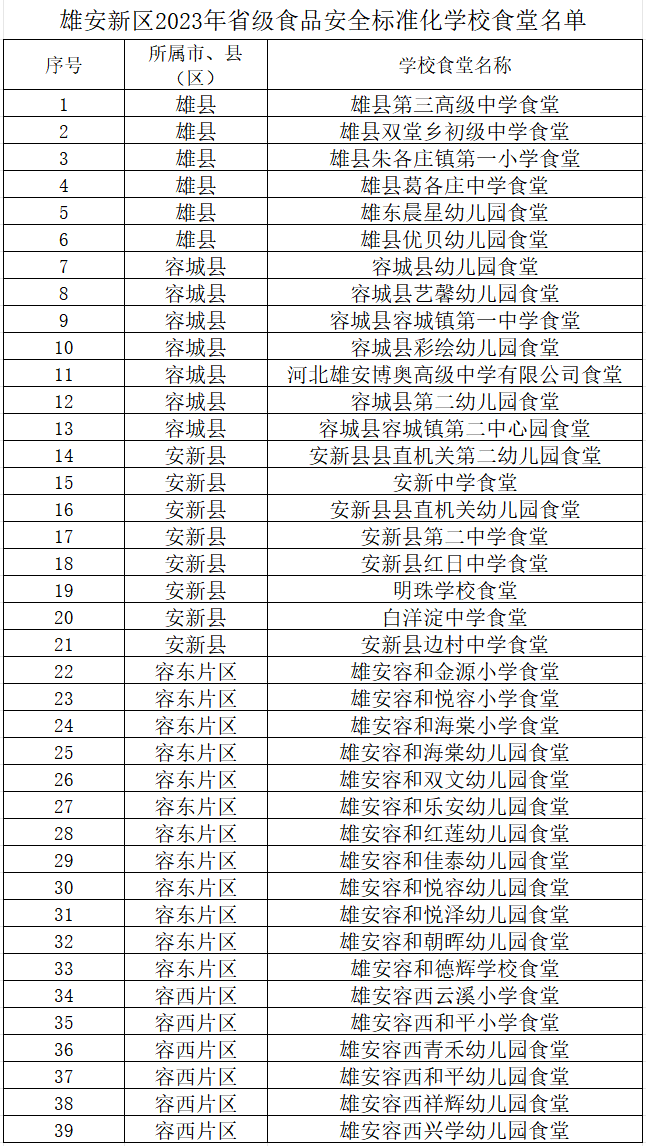 中國雄安官網1月5日電 近日,河北省市場監督管理局發布“2023年省級食品安全標準化學校食堂”名單,確定1200家單位為“2023年省級食品安全標準化學校食堂”。其中,雄安新區容和悅容小學等39家學校食堂位列其中。