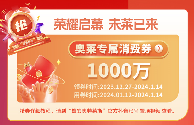 為慶祝雄安奧特萊斯開業,助力雄安新區2024年新春嘉年華,1000萬奧萊專屬消費券已火爆開搶。大家可憑消費券享受滿10000元減2500元,滿2000元減400元,滿1000元減200元,滿500元減100元,滿50元減20元等各級優惠。