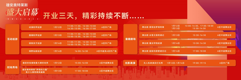 中國雄安官網1月8日電(封俊龍)1月12日,雄安奧特萊斯將與雄安新區2024年新春嘉年華同步開場,將為新區及周邊居民和游客提供吃喝玩樂一站式休閑購物體驗場景。