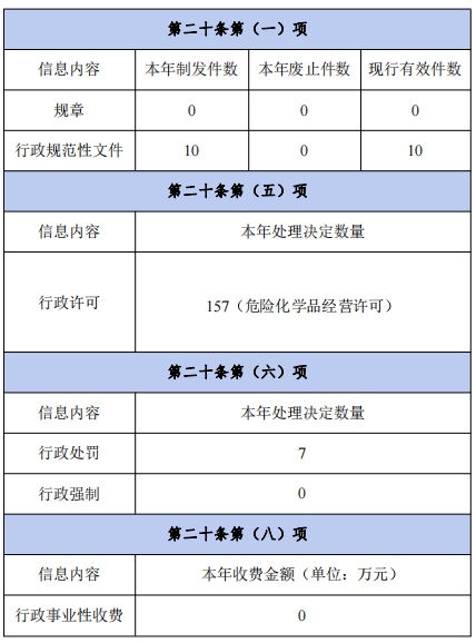 (一)主動公開方面。2023年新區應急管理局積極做好政府信息主動公開工作,印發《雄安新區應急管理局關于進一步規范政務公開有關工作的通知》,進一步規范政務公開流程,提高政務公開工作質效,切實做到“應公開、盡公開”。通過網站、微信公眾號等主動發布工作動態2044條,及時發布應急管理、安全生產、森林草原防滅火、防汛工作開展情況;采取圖文、視頻、動漫等形式開展安全生產、應急避險、防災減災和5612350有獎舉報宣傳,并對規范性文件和重點工作進行立體式、全方位解讀;公示危險化學品經營許可157個;行政處罰信息7個。