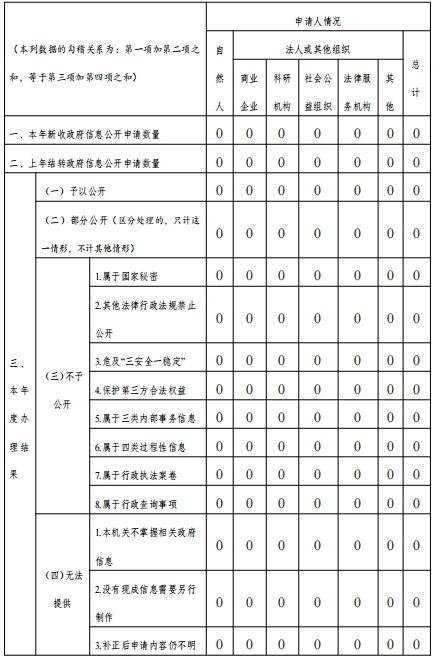 (二)依申請公開方面。認真貫徹執行《條例》《辦法》《河北省政府信息公開申請辦理規范》,全年未收到政府信息公開申請,無因政府信息公開工作被申請行政復議、提起行政訴訟情況。