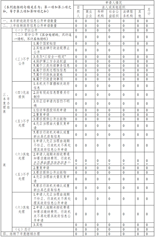 本報告根據《中華人民共和國政府信息公開條例》(以下簡稱《條例》)《中華人民共和國政府信息公開工作年度報告格式》(國辦公開辦函〔2021〕30號)相關要求編制,內容包括總體情況、主動公開政府信息情況、收到和處理政府信息公開申請情況、政府信息公開行政復議和行政訴訟情況、存在的主要問題及改進情況、其他需要報告的事項等六個部分。本年度報告所列數據統計期限為2023年1月1日至12月31日。