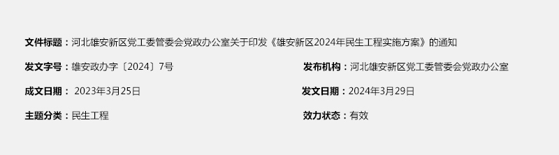 河北雄安新區黨工委管委會黨政辦公室關于印發《雄安新區2024年民生工程實施方案》的通知