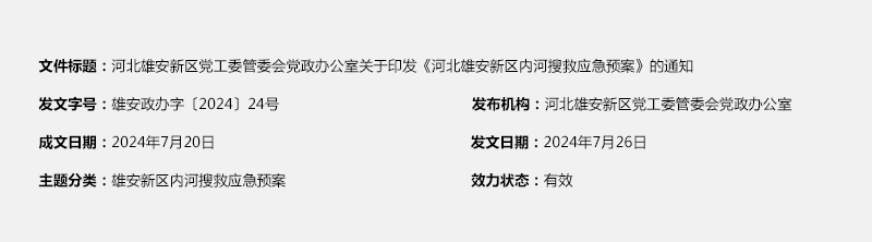 河北雄安新區(qū)黨工委管委會(huì)黨政辦公室關(guān)于印發(fā)《河北雄安新區(qū)內(nèi)河搜救應(yīng)急預(yù)案》的通知
