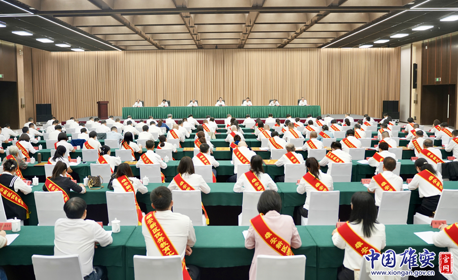 雄安新區黨工委副書記、管委會副主任李濤主持會議,并宣讀了《關愛激勵教師十條措施》。雄安新區黨工委委員、管委會副主任門揚宣讀了有關表揚的通報。與會領導共同為榮獲雄安新區教育先進集體、優秀教育工作者、優秀教師、師德標兵、教育世家的獲獎者頒發獎牌和榮譽證書。容城縣政府黨組成員、教育局局長梁立超,雄縣第二高級中學校長賈潤華,雄安史家胡同小學校長張欣欣,安新縣實驗中學教師袁娜作為代表依次發言。