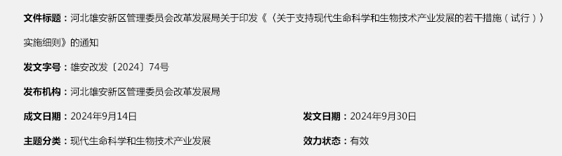 河北雄安新區管理委員會改革發展局關于印發《〈關于支持現代生命科學和生物技術產業發展的若干措施(試行)〉實施細則》的通知