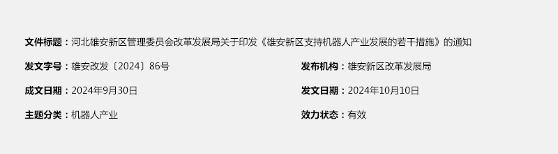 ?????? 《雄安新區機器人產業創新發展三年行動計劃(2024—2026年)》《雄安新區支持機器人產業發展的若干措施》政策解讀