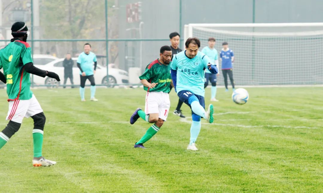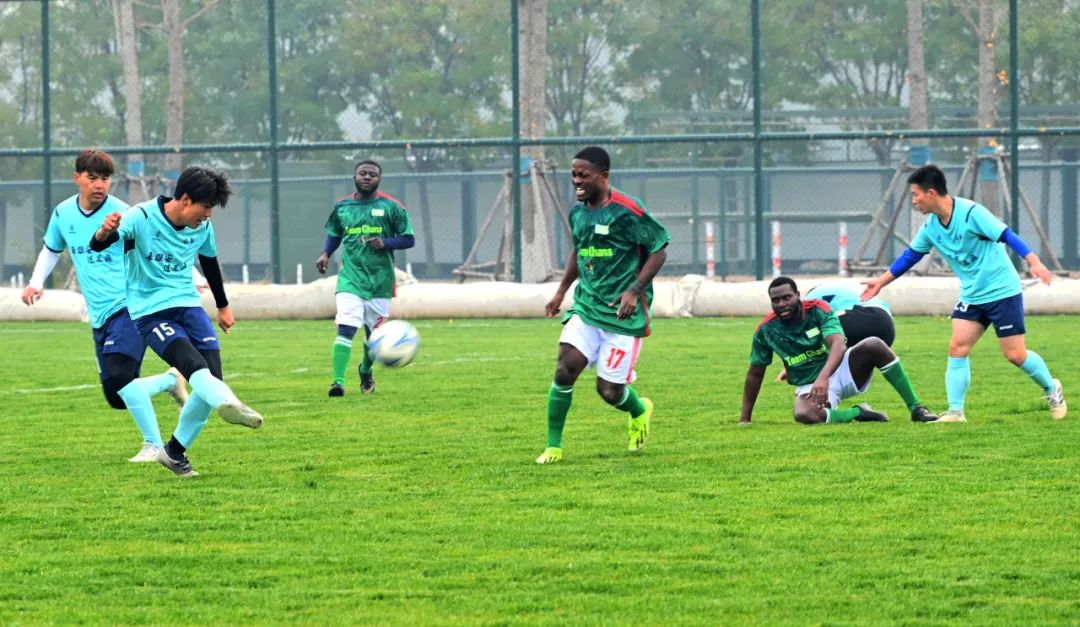“快、快,搶斷……回來。”球場上,一名加納隊員不時用漢語跟隊友交流,隊友們在奔跑中默契地做著配合。這名漢語流利的加納球員就是此次足球邀請賽的發起者——安迪。