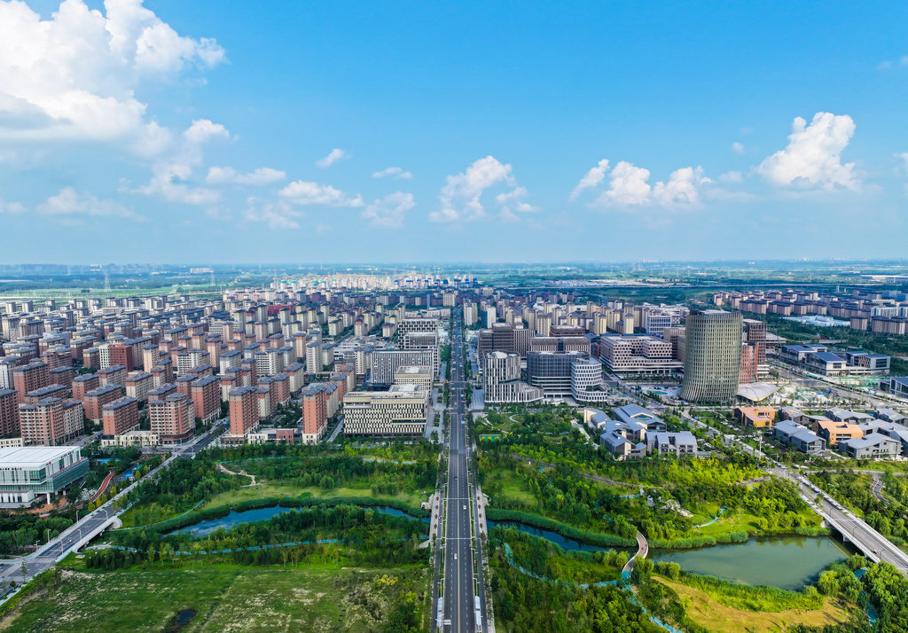 2024年8月14日,无人机航拍的雄安新区容东片区。河北日报记者李畅 摄