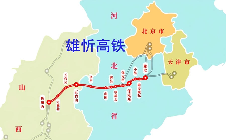 雄忻高铁线路图。国铁建管雄安指挥部供图