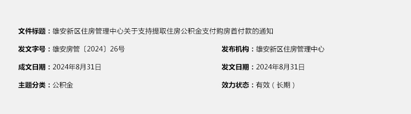 雄安新区住房管理中心关于支持提取住房公积金支付购房首付款的通知