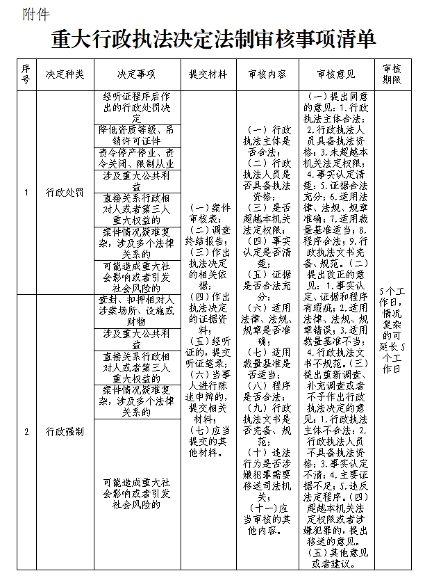 结合本机关执法职责、执法层级、涉案金额等因素,编制重大行政执法决定法制审核事项清单(附件),并根据实际情况进行动态调整。