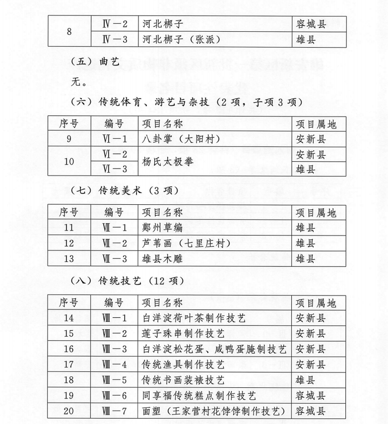 附件:雄安新区第一批新区级非物质文化遗产代表性项目名录