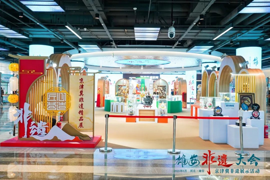 在雄安商务服务中心地下环廊,琳琅满目的京津冀非遗精品区,共汇聚了三地200余件具有代表性且与现代生活融合紧密的传统技艺、传统美术类非遗精美作品。漫步其间,技艺精湛的北京玲珑枕、色彩华美的津派周氏风筝、精美的定兴京绣……一件件巧夺天工的艺术品,让游客爱不释手,营造出非遗保护成果共享的和谐氛围。