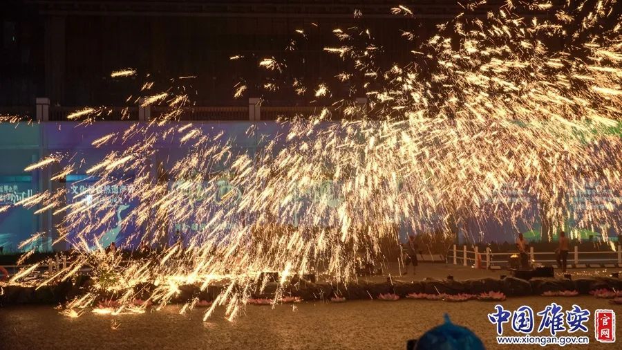 展演内容丰富多彩,通过非遗元素与流行元素的深度交融,创新多种演绎形式。舞蹈《风荷水墨》通过舞蹈动作与舞台布景的巧妙结合,展示出新区蓝绿交织、水城共融的生态底色;戏曲舞蹈《袖舞弦歌》典雅大气,将戏曲艺术的柔美与东方美学展现的淋漓尽致;战鼓武术《武韵安澜》雄浑激昂,刚劲与柔美交织,尽显燕赵儿女豪迈气概;吴桥杂技《蝶恋花》与光影效果相映成趣;热血沸腾的摇滚民谣《燕赵歌行》热力开唱;打铁花《火树金花》作为压轴华章,迸发出传统技艺穿越千年的磅礴生命力。
