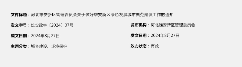 河北雄安新区管理委员会关于做好雄安新区绿色发展城市典范建设工作的通知