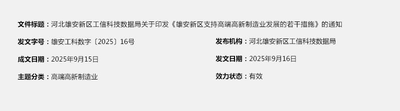 河北雄安新区工信科技数据局关于印发《雄安新区支持高端高新制造业发展的若干措施》的通知