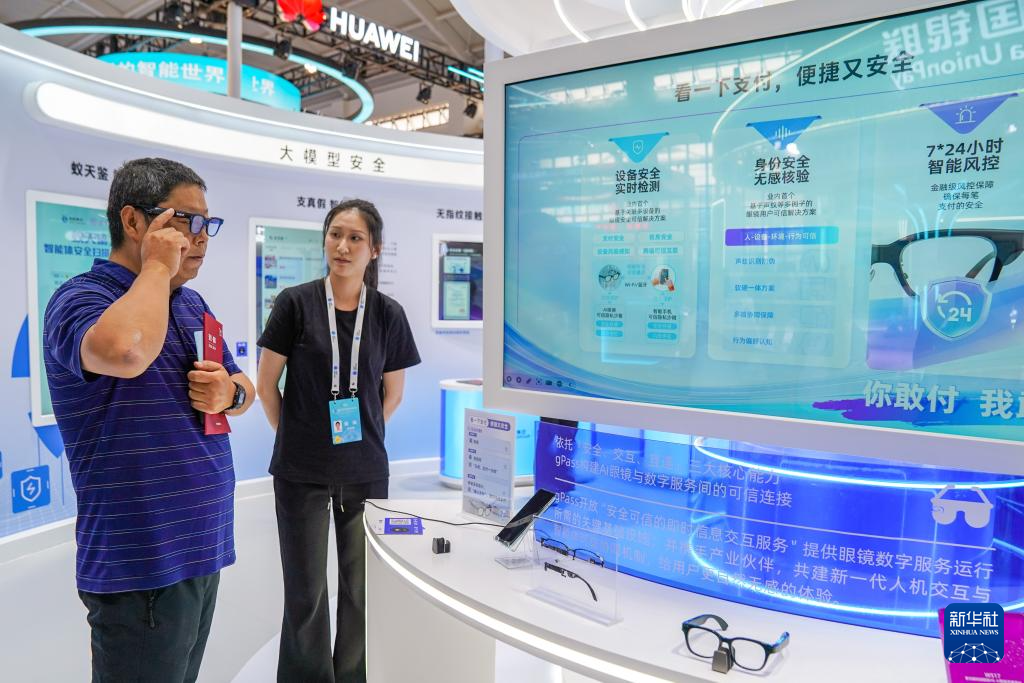 9月15日,观众在云南昆明举行的2025年国家网络安全宣传周配套活动——网络安全博览会暨网络安全产品和服务国际推介会上体验智能眼镜。新华社记者彭奕凯 摄