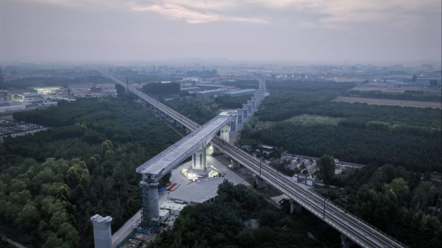 雄忻高铁雄保段跨京广高铁转体桥成功转体